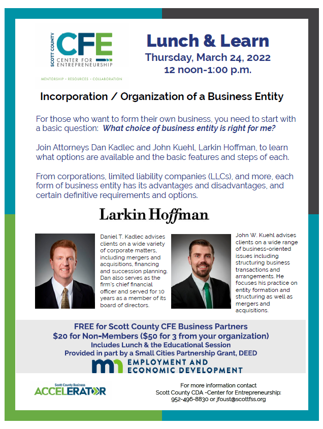 March 24, 2022 - 12:00 pm - 1:00 pm | Scott County Center For Entrepreneurship